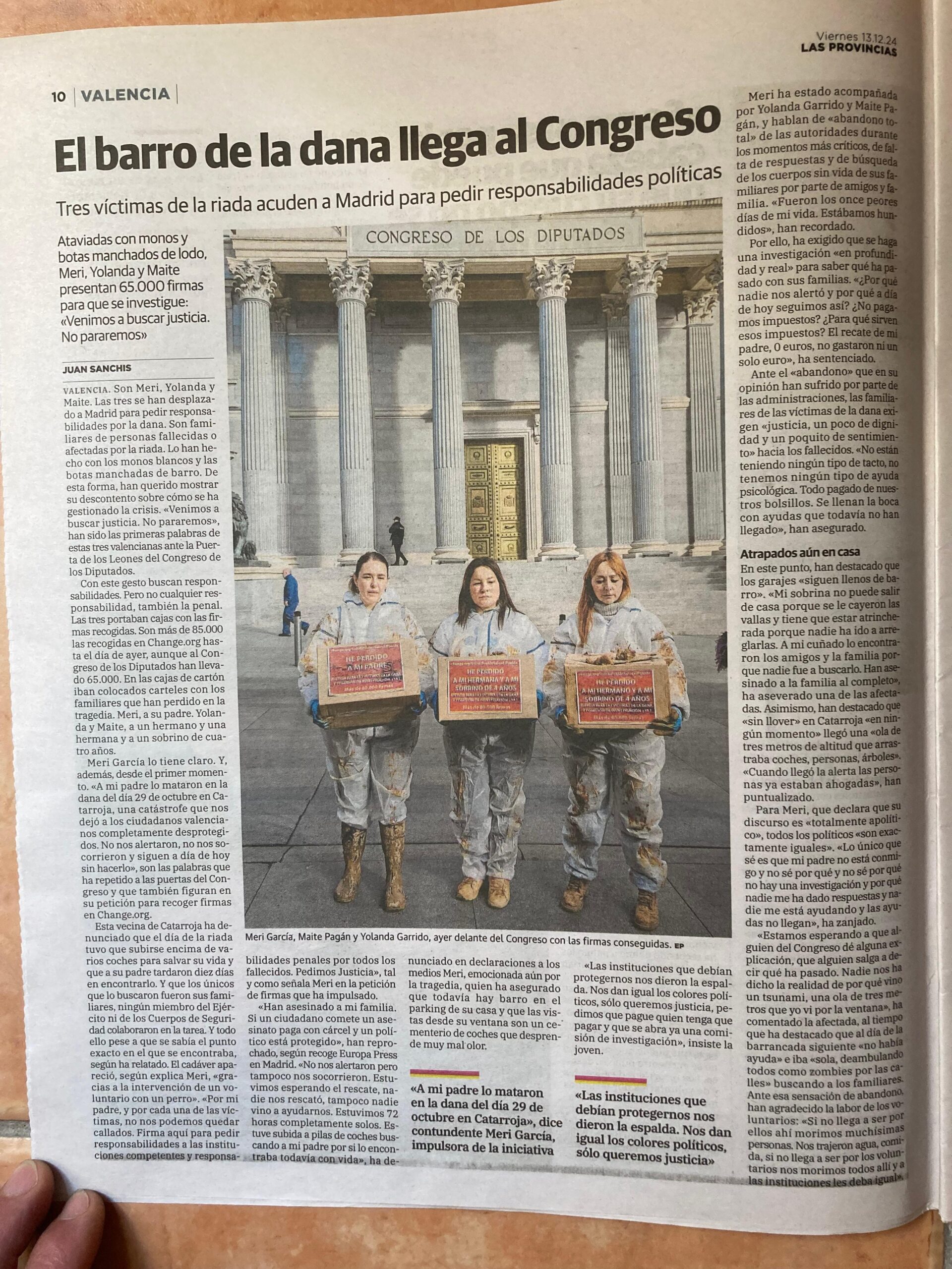 No es que no hubiera intentos por parte de la población de buscar respuestas a través de las instituciones del Estado; es que al día de hoy no hay resultados. Familiares de víctimas entregando 65.000 firmas al Congreso en Madrid, el 12 de diciembre de 2024. – Foto: mutantia.ch